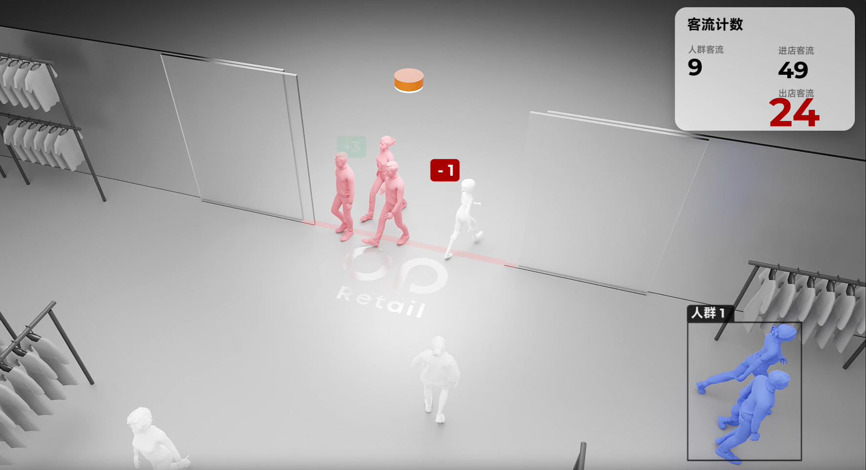 智能视频分析:通过天花板安装的智能摄像头,实现精准人数统计(区分进/出)、轨迹追踪、热力图生成,并严格匿名化处理保护隐私。