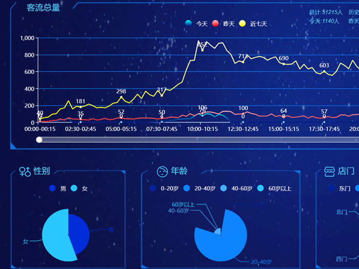 实时客流统计系统可以深入进行客流的信息分析,这个对于很多的大型商场是有大作用的,通过对数据的分析获得更多消费者信息是很重要的